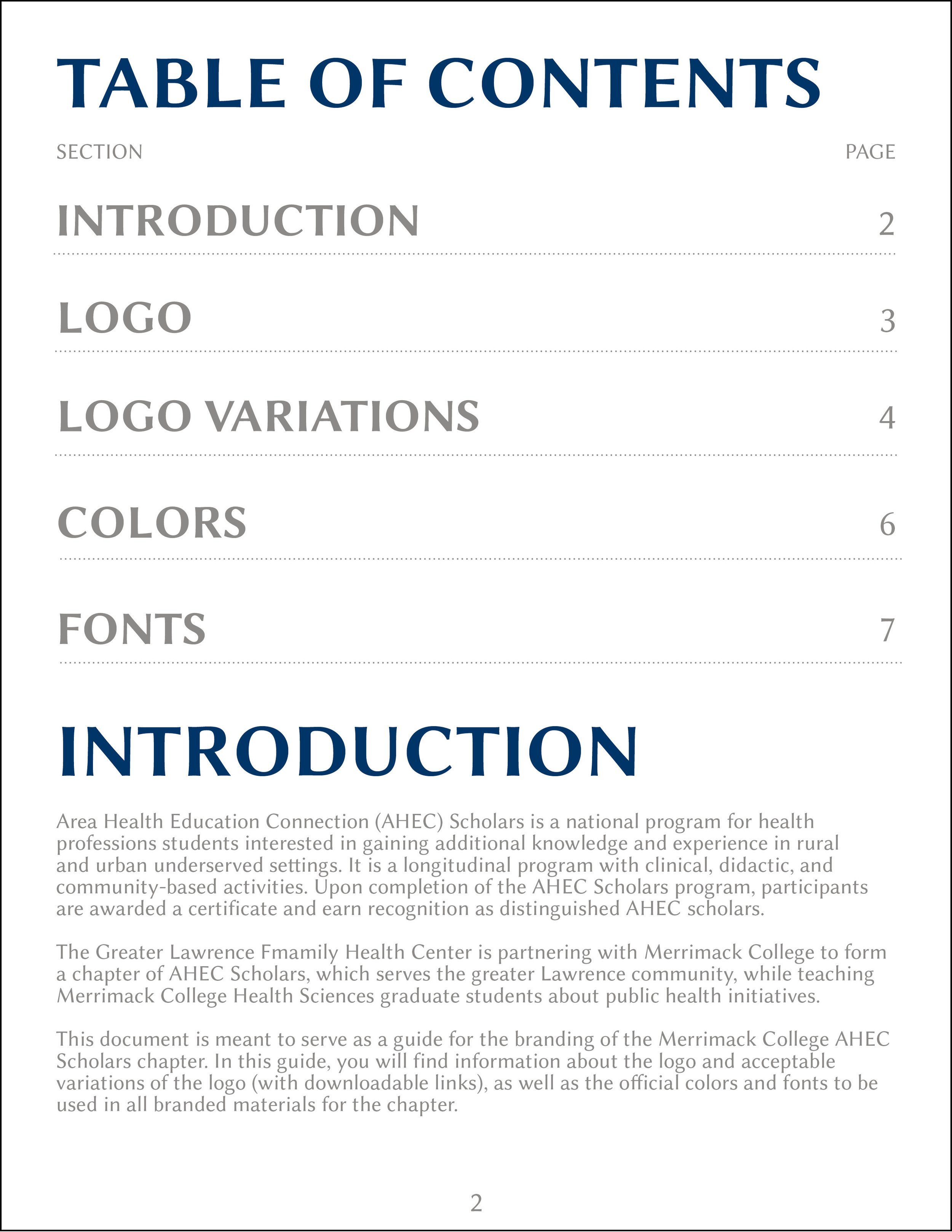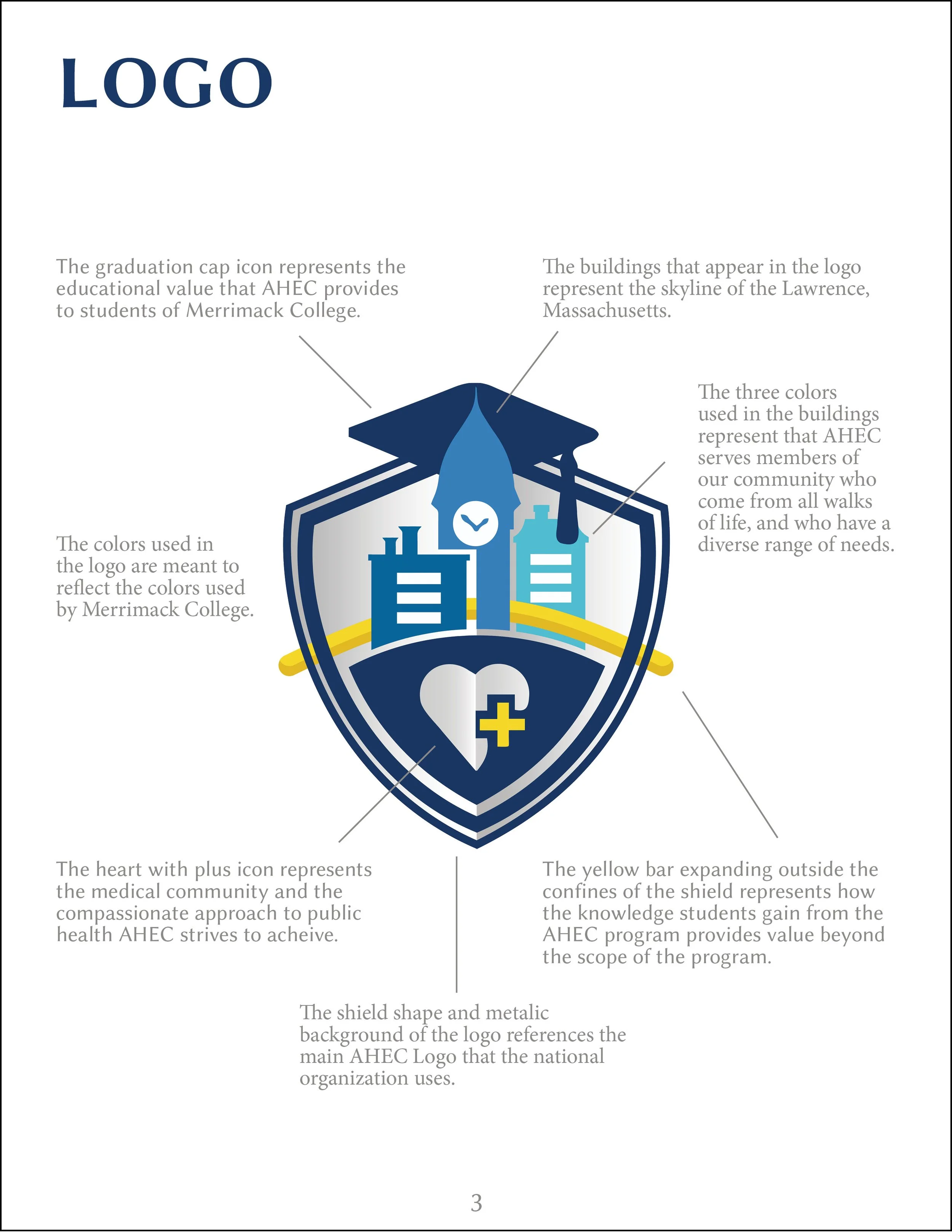 Area Health Education Connection (AHEC) Scholars is a national organization that works with graduate health science students, and brings them into urban and rural areas to teach them about public health initiatives. The Greater Lawrence Family Health Center is partnering with Merrimack College to create an AHEC Scholars chapter at the college. I was contacted about creating a logo for the new chapter that represents the city of Lawrence, Merrimack College, and the AHEC Scholars program.